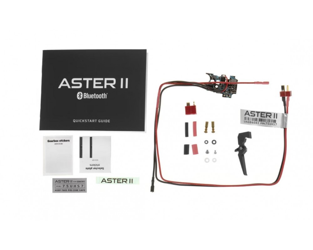 The brand new ASTER II Bluetooth® EXPERT for V2 GB is the younger brother of the well-known TITAN II Bluetooth®. Built-in Bluetooth 5.2 technology gives you direct access to ASTER II Bluetooth® settings, AEG telemetry, and the ability to use our smartwatch app, the tactical computer STATUS, and other future devices of the GATE Ecosystem. Today you can use ASTER II Bluetooth® with your AEG and tomorrow with a single solenoid HPA engine. This makes ASTER II Bluetooth®, right after TITAN II Bluetooth®, the most versatile ETU in the world replacing trigger contacts. ASTER II Bluetooth® raises the price-performance ratio by including an adjustable Quantum Trigger 2 and Bluetooth® 5.2 onboard. You get cutting-edge technologies at a reasonable price. Now, out of the box, you can set sensitivity from ludicrous touch through hair to full movement. Automatic pre-cocking, trigger sensitivity adjustment, Active Brake settings with top-class adaptive mode and the Binary Trigger are all available via Bluetooth® with the GCS app. Extended compatibility with brushless motors – ASTER II Bluetooth® is compatible with popular brushless motors even with a supply voltage of 11.1 V. ASTER's smart fuse protects your AEG’s battery, motor, and the controller. This feature, along with the optical sensors, makes ASTER II Bluetooth® one of the most durable ETUs on the market. ASTER II Bluetooth® is not just a regular ETU/EFCS mosfet. It is a complex system that turns your AEG into future-proof advanced training equipment with built-in Bluetooth®. ASTER II Bluetooth® has a coating in the MIL-V-173C military specification, making it resistant to weather conditions.